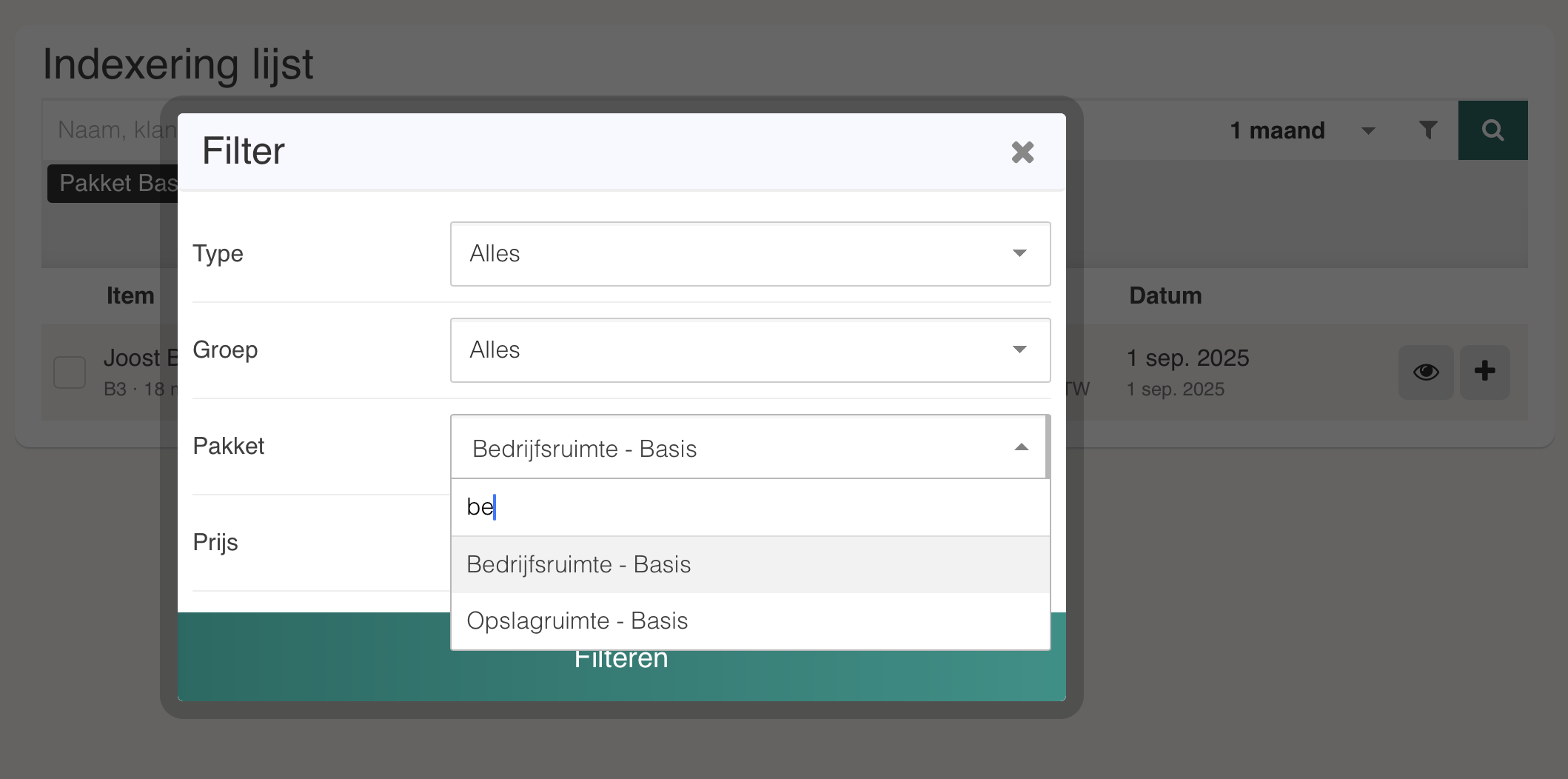 Wanneer je de basisprijs (in het beheer) niet aanpast, maar wel de huurprijs van een individuele klant wilt verhogen kan je optie 'Prijsindex' het beste gebruiken. Hieronder wordt een voorbeeld beschreven.
