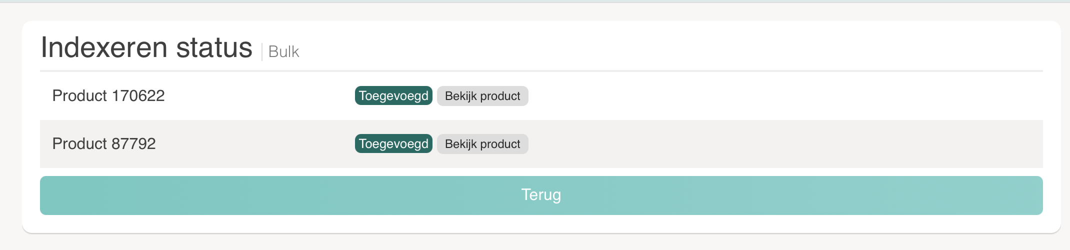 Na het opslaan zie je welke index-items goed zijn opgeslagen en welke extra aandacht vereisen, het kan bijvoorbeeld zijn dat je een lagere prijs hebt ingevuld dan wat de klant al betaald, je ontvangt dan een extra melding.