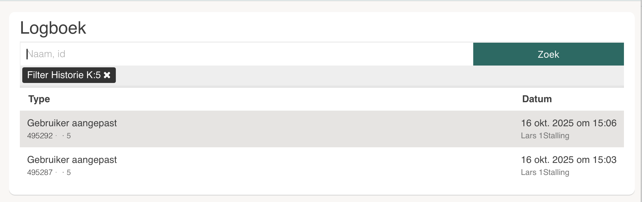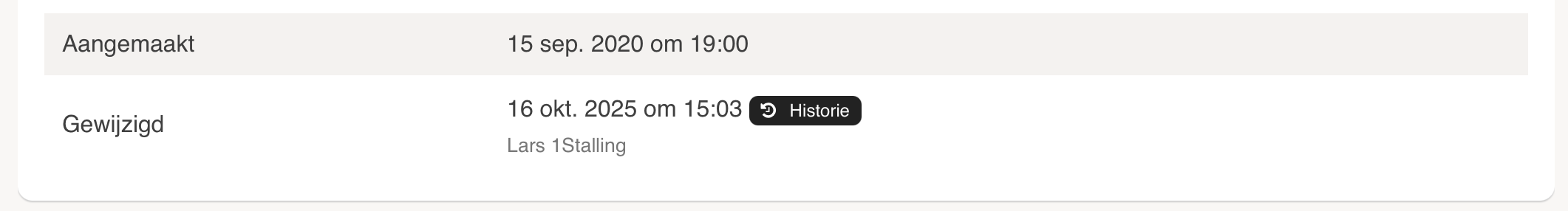 - Vervolgens zie je alle historie van dit object. De aangepaste datums en wie deze aanpassing gedaan heeft. Klik erop voor meer informatie.