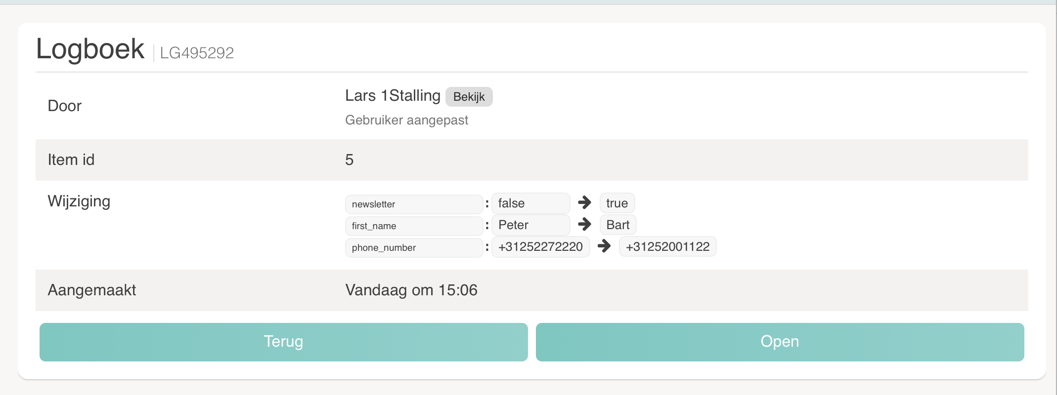 - Je kan vervolgens alle oude en nieuwe waardes inzien.
