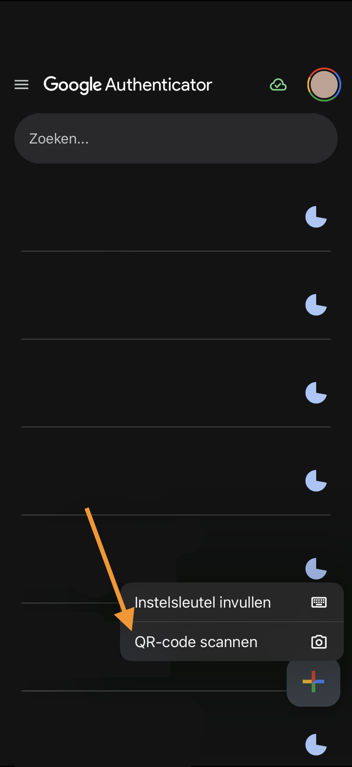 Na het scannen van de QR-code verschijnt er een extra regel met een 6-cijferige code in de App.