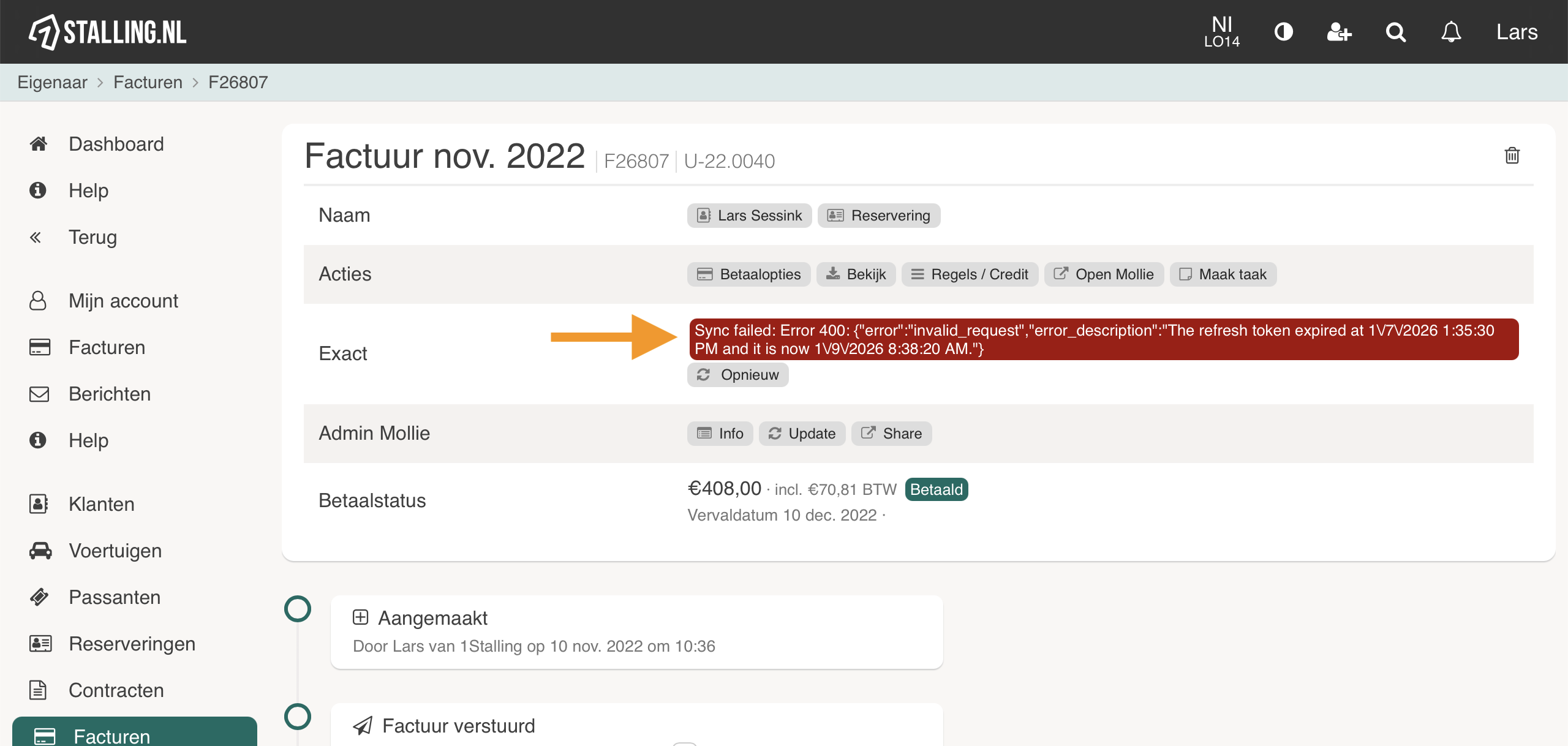 Als je een factuur aanklikt zie je de issue en kan je het eventueel opnieuw proberen.