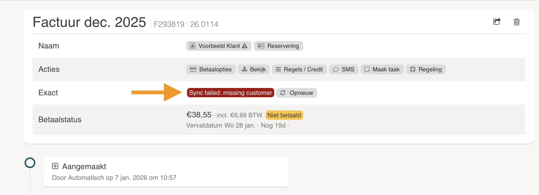 Wat betekend de 'Sync failed: missing customer' error in de boekhoudkoppeling?