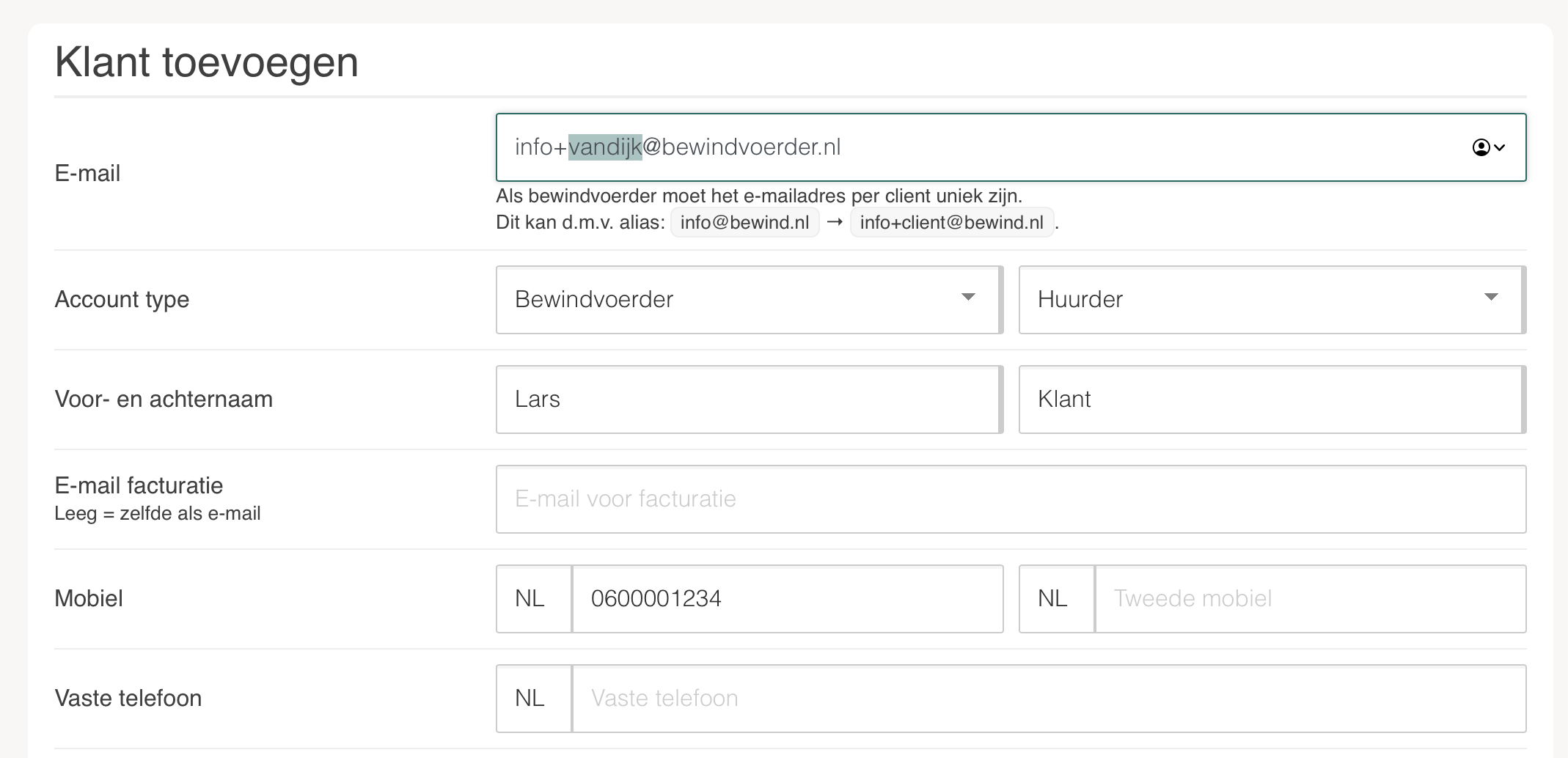 Client 2: info+clientnaam2@bewind.nl (bijv. info+lars.o@bewind.nl