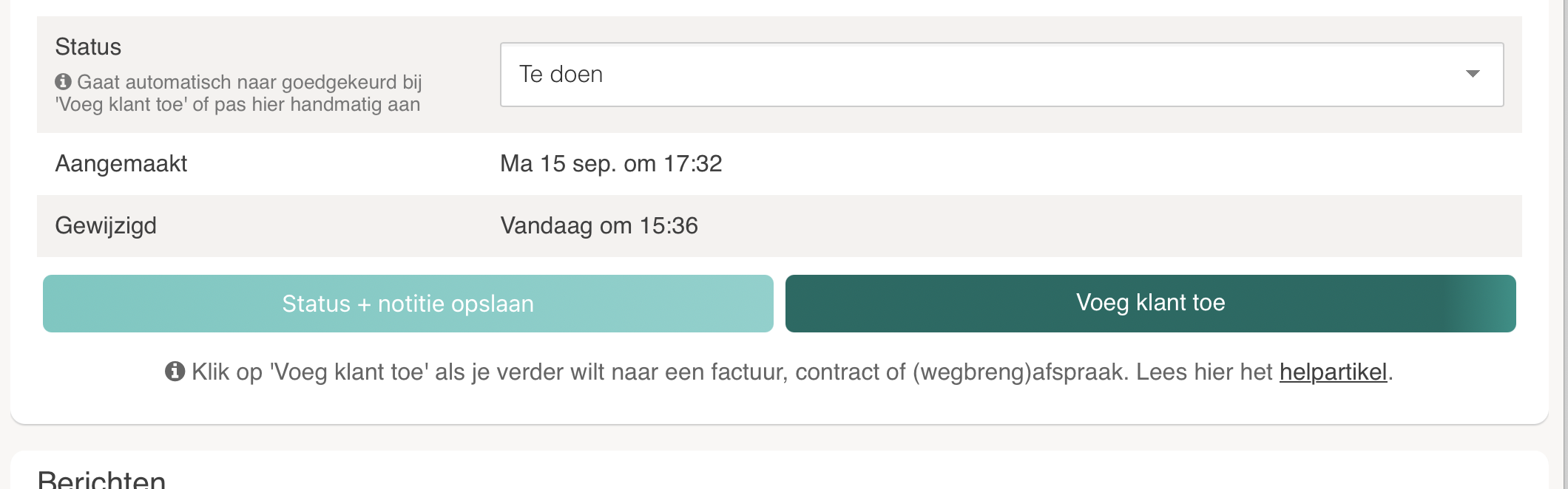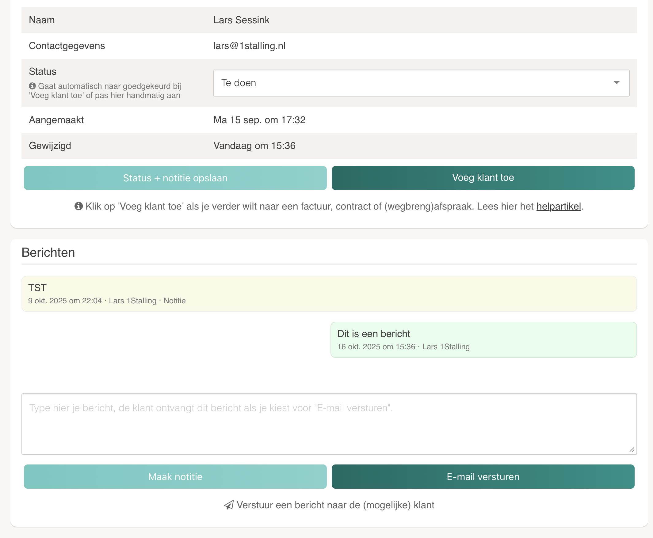 💡 TIP: Ons huidige advies is om een lead pas als klant toe te voegen als je zeker weet dat hij/zij wilt huren. Zo hou je het bestand met klanten overzichtelijk.